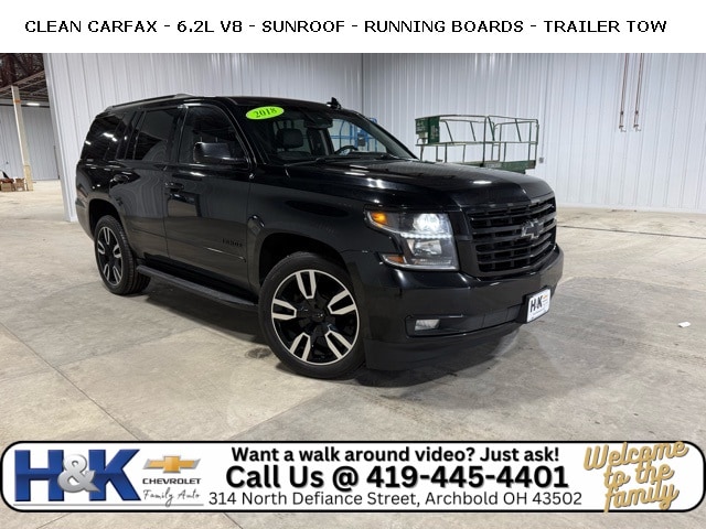 H&K Chevrolet of Archbold has been family owned and operated for over 70 years. Quietly located in NW Ohio, in a town of 4000 people. Customer service and honesty, are top priorities at Christy. We price our vehicles honestly, and straight forward to give you the easiest buying experience possible. New Price! Black 2018 Chevrolet Tahoe Premier 4WD 10-Speed Automatic with Overdrive