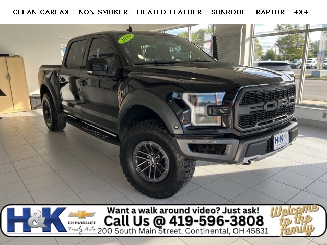 H&K has been family owned and operated for over 60 years. Quietly located in NW Ohio, in a town of 900 people. Customer service and honesty, are top priorities at H&K. We price our vehicles honestly, and straight forward to give you the easiest buying experience possible. Priced below KBB Fair Purchase Price! *** No Hassle Pricing ***, *** Clean History Report ***, *** SUNROOF/MOON ROOF ***, CLEAN CARFAX, *** 4X4/4WD ***, F-150 Raptor, 4D SuperCrew, 3.5L V6 EcoBoost, Agate Black Metallic.